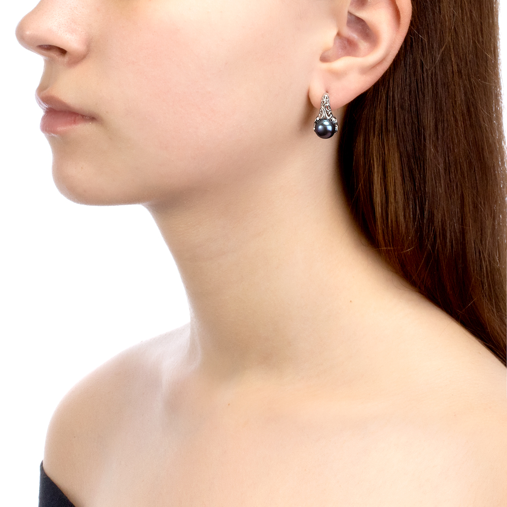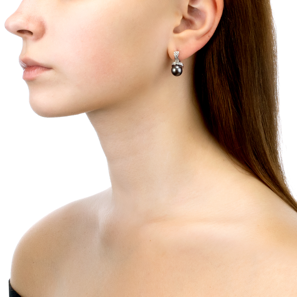 Серьги из серебра с черными жемчужинами 9-10 мм. Артикул 11262
