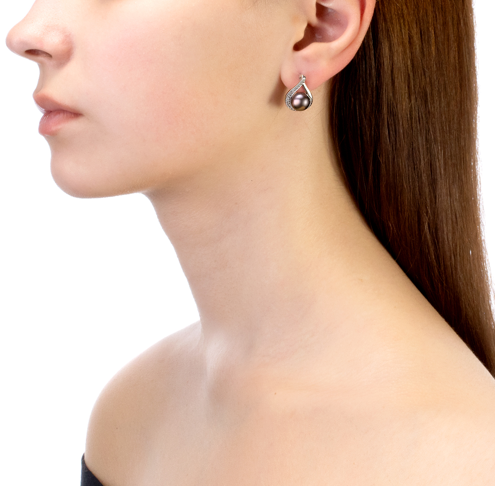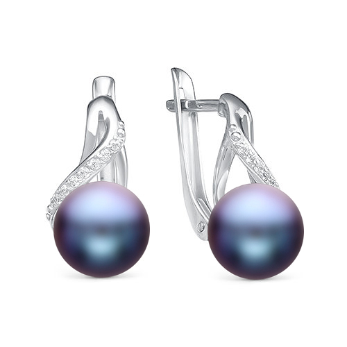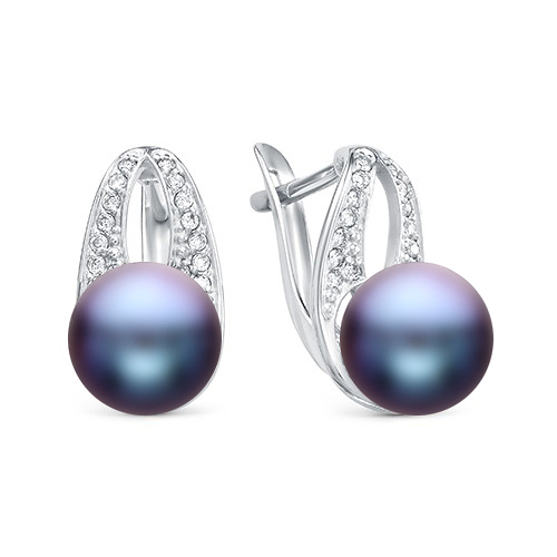 Серьги из серебра с черными жемчужинами 8,5-9 мм. Артикул 10106