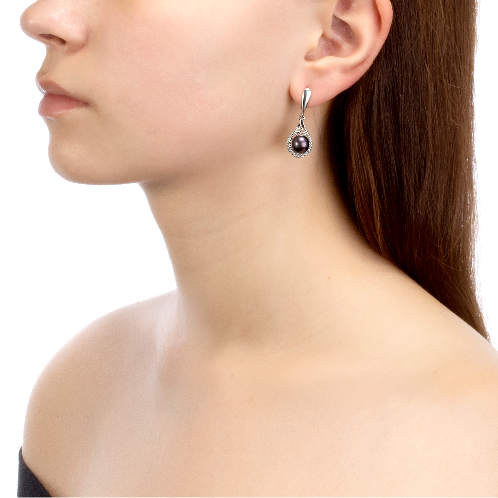 Серьги из серебра с черными жемчужинами 7-7,5 мм. Артикул 10796