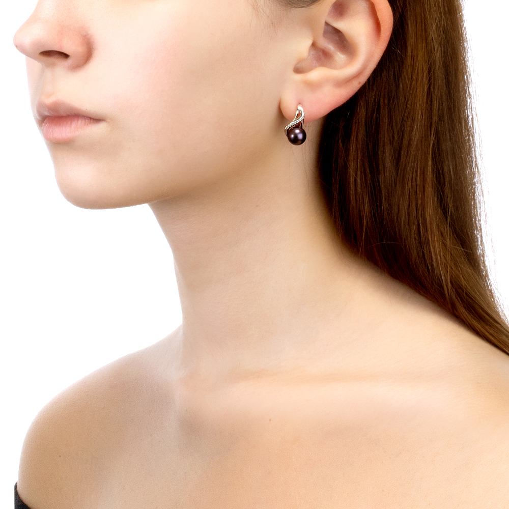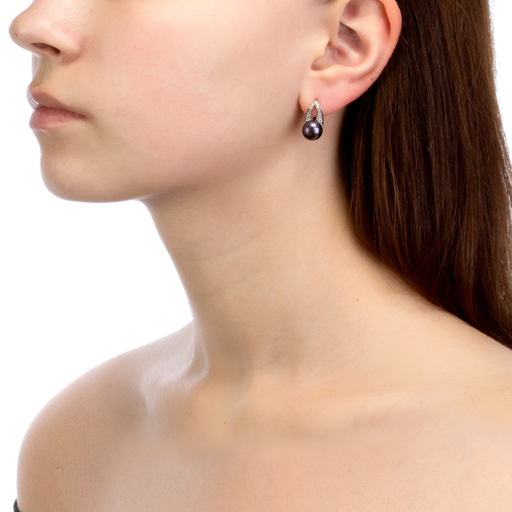 Серьги из серебра с черными жемчужинами 8,5-9 мм. Артикул 10402