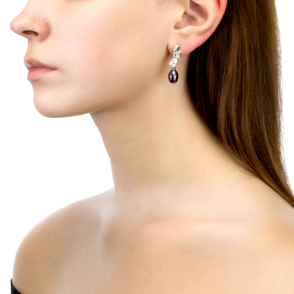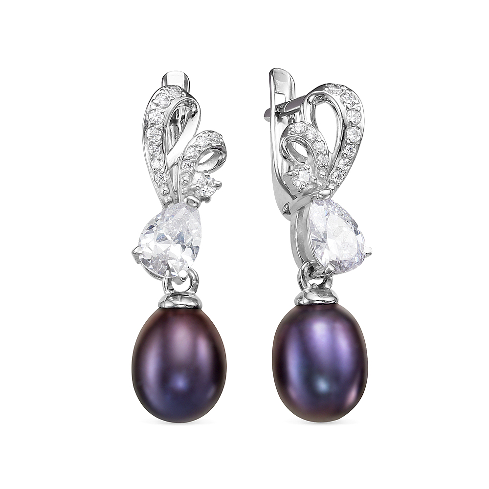 Серьги из серебра с черными жемчужинами "капля" 7,5-8 мм. Артикул 12470