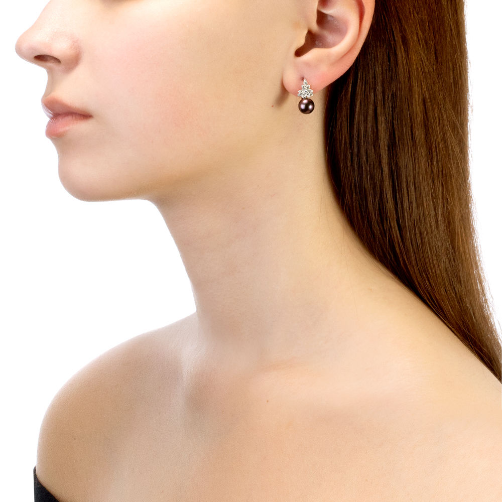 Серьги из серебра с черными жемчужинами 7,5-8 мм. Артикул 11520