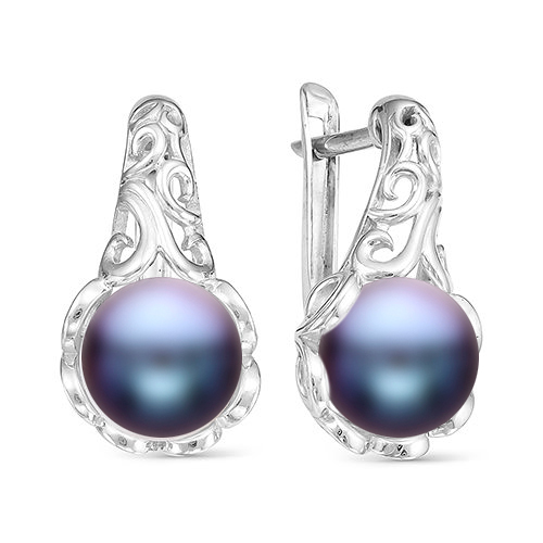 Серьги из серебра с черными жемчужинами 8,5-9 мм. Артикул 11114