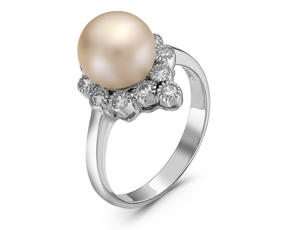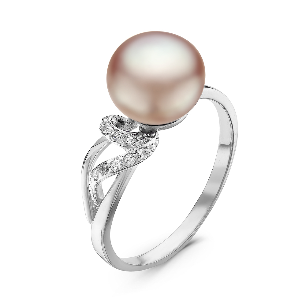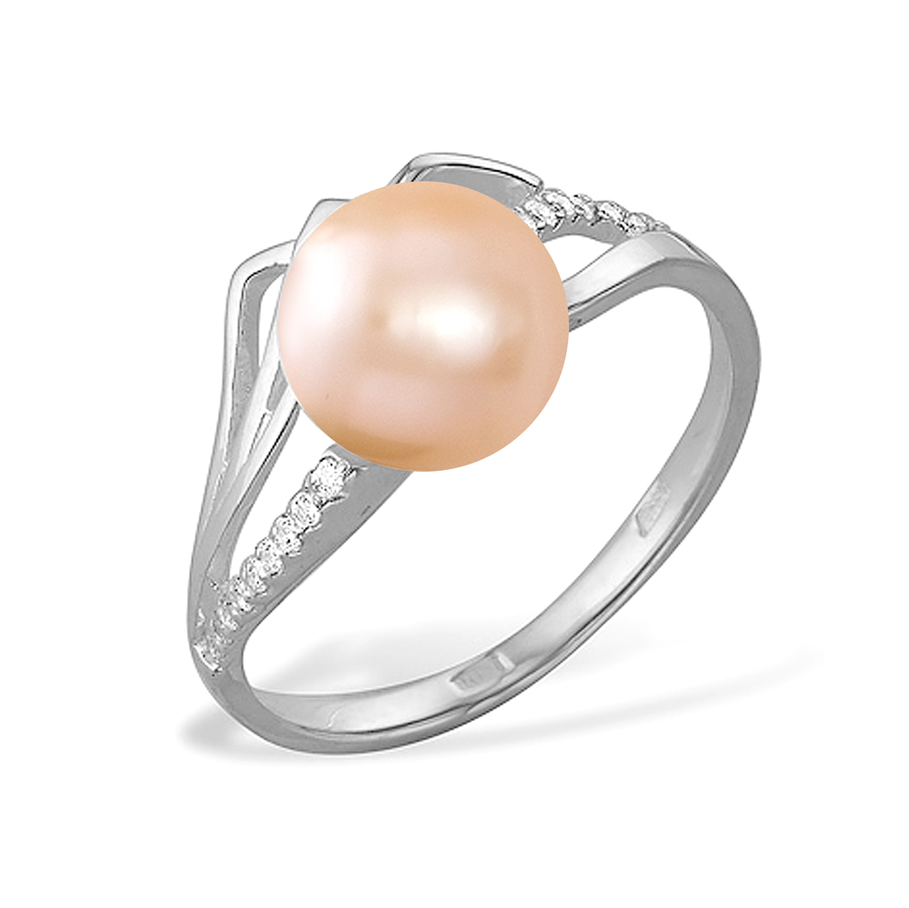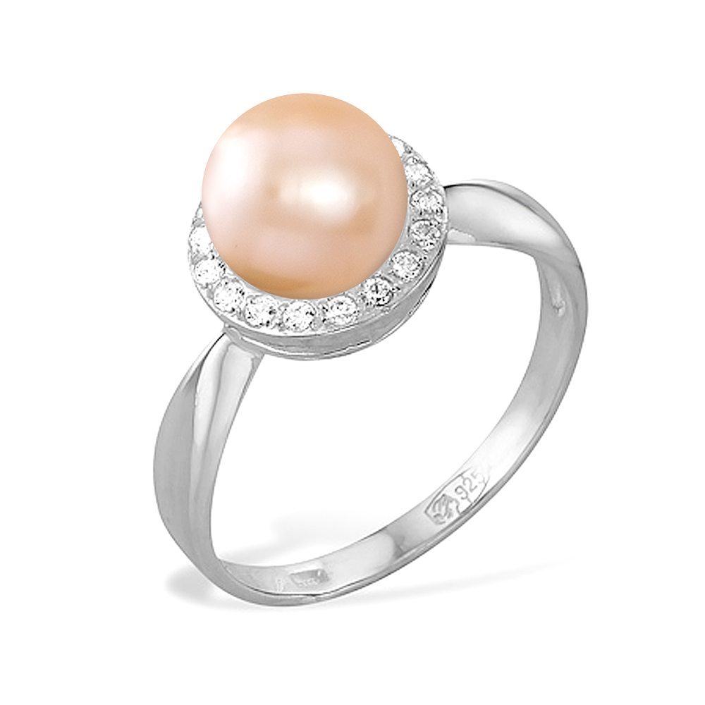 Кольцо из серебра 925 пробы с розовой жемчужиной 9 мм. Артикул 10517