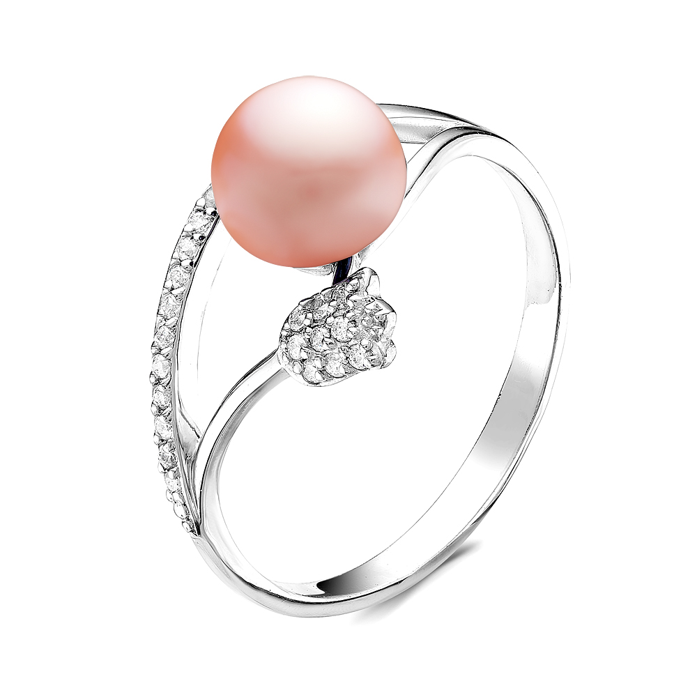 Кольцо из серебра 925 пробы с розовой жемчужиной 7,5-8 мм. Артикул 10883