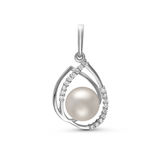 Кулон из серебра с белой жемчужиной 8,5-9,5 мм. Артикул 10762