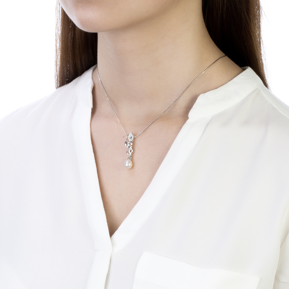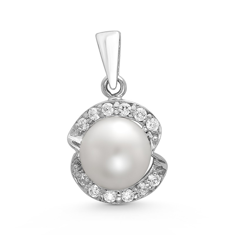 Кулон из серебра, украшенный белой речной жемчужиной 8,5-9 мм. Артикул 9753