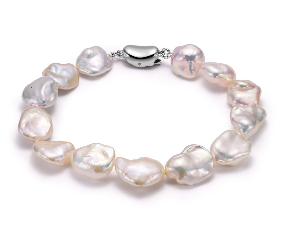 Браслет из белого барочного жемчуга 10,5-12 мм. Качество жемчуга наивысшее ААА. Артикул 11179