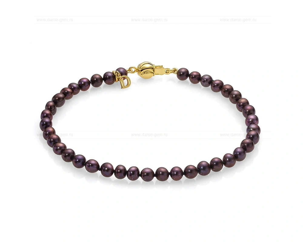 Браслет из черного круглого речного жемчуга 5-5,5 мм. Качество жемчуга наивысшее ААА. Артикул 9319