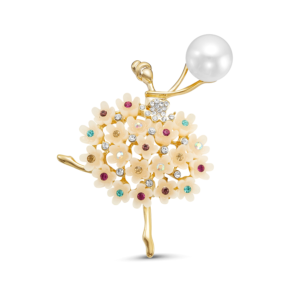 Брошь "Балерина" с белой жемчужиной 9,5-10 мм. Артикул 11951