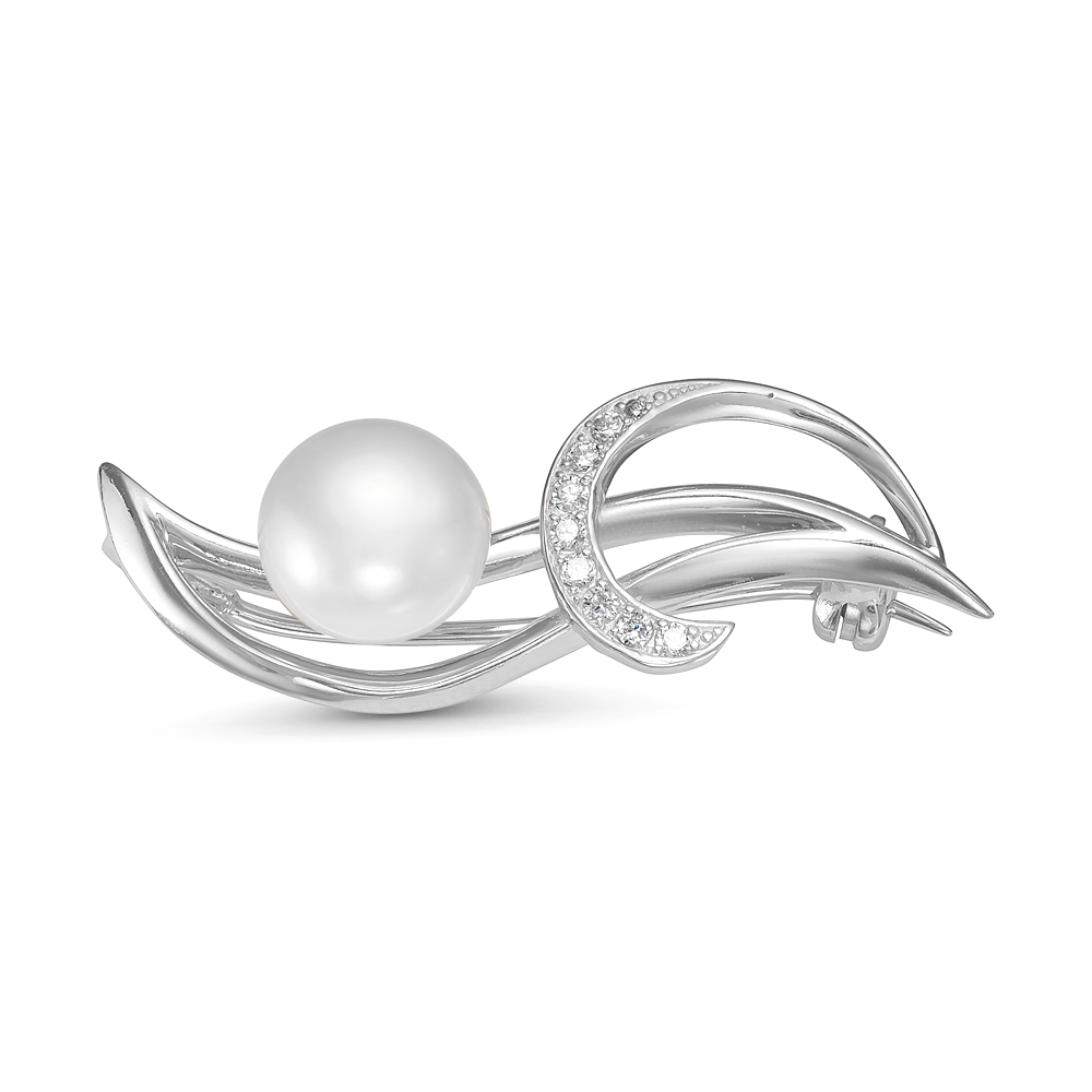 Брошь из серебра с белой жемчужиной 9,5-10 мм. Артикул 8474