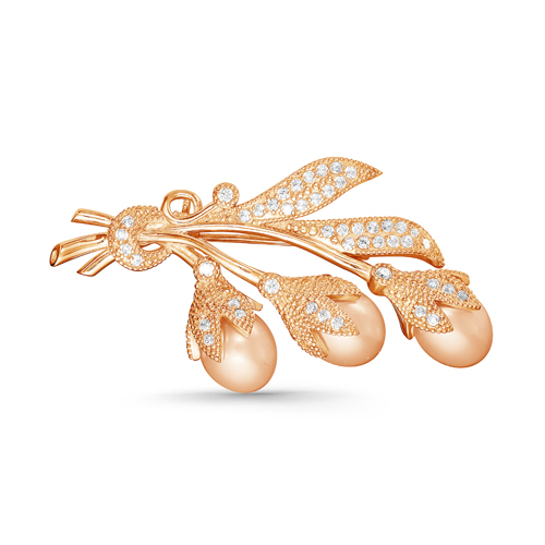 Брошь из серебра с розовыми жемчужинами 7,5-8 мм. Артикул 11915