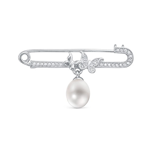 Брошь серебряная с речной каплевидной жемчужиной 9-10 мм. Артикул 10031