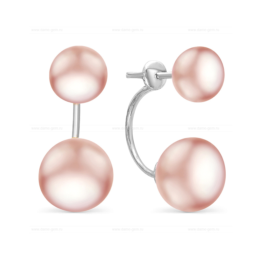 Двойные пусеты "Dior" из серебра с розовыми жемчужинами 8,5-11 мм. Артикул 10779