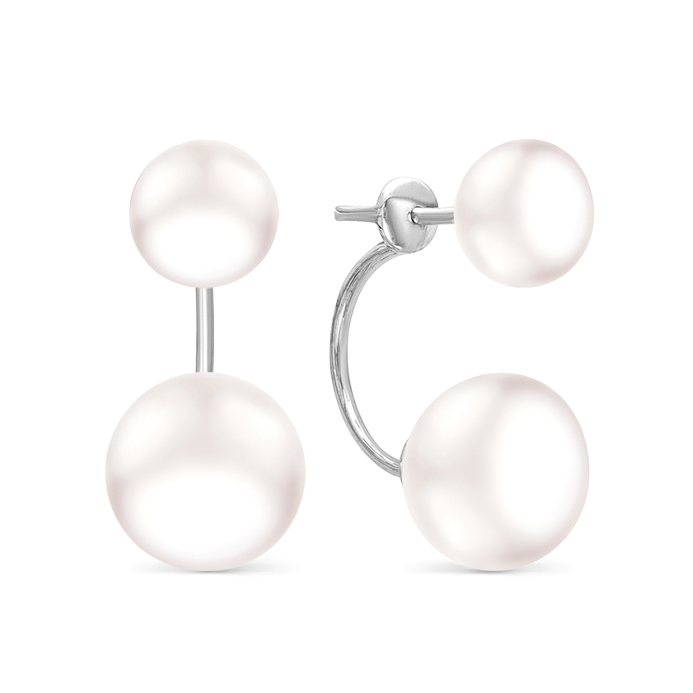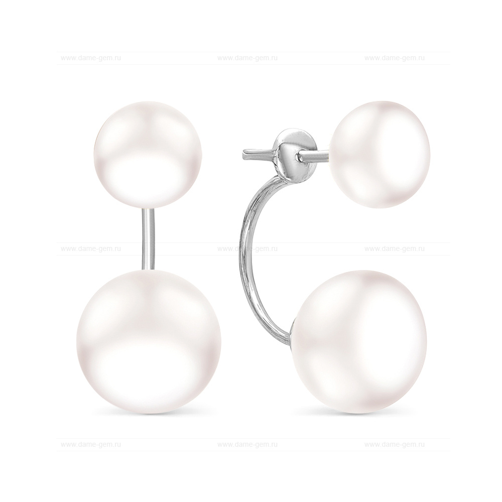 Двойные пусеты "Dior" из серебра с белыми жемчужинами 8,5-11 мм. Артикул 10781