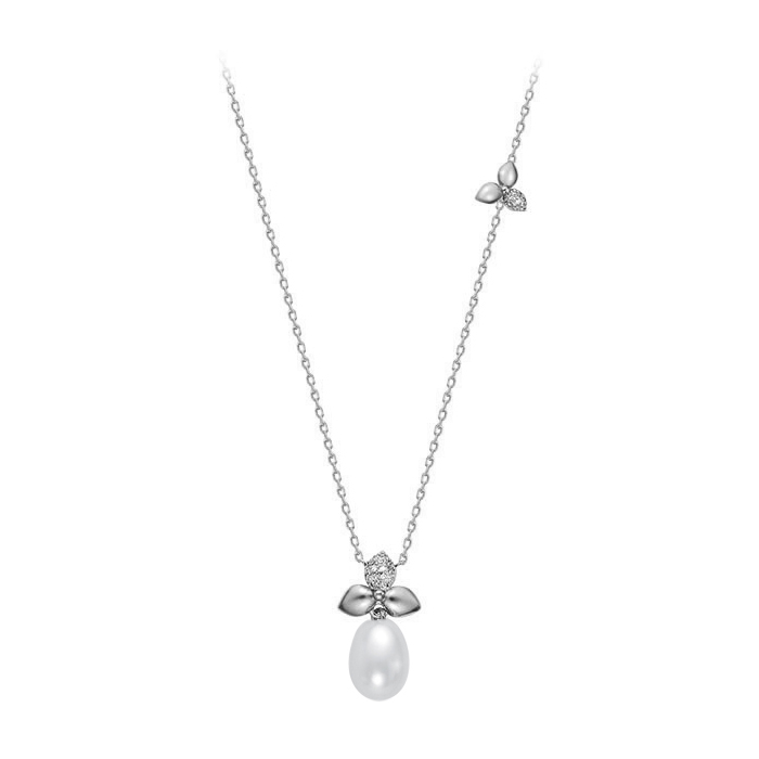 Колье из серебра 925 пробы с белой речной жемчужиной 9,5-10 мм. Артикул 10512