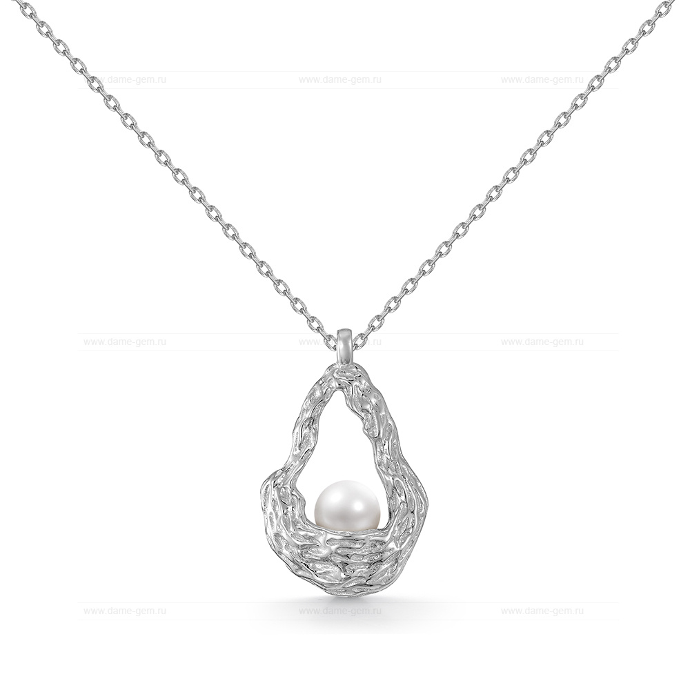 Колье из серебра 925 пробы с белой речной жемчужиной 6-6,5 мм. Артикул 11638