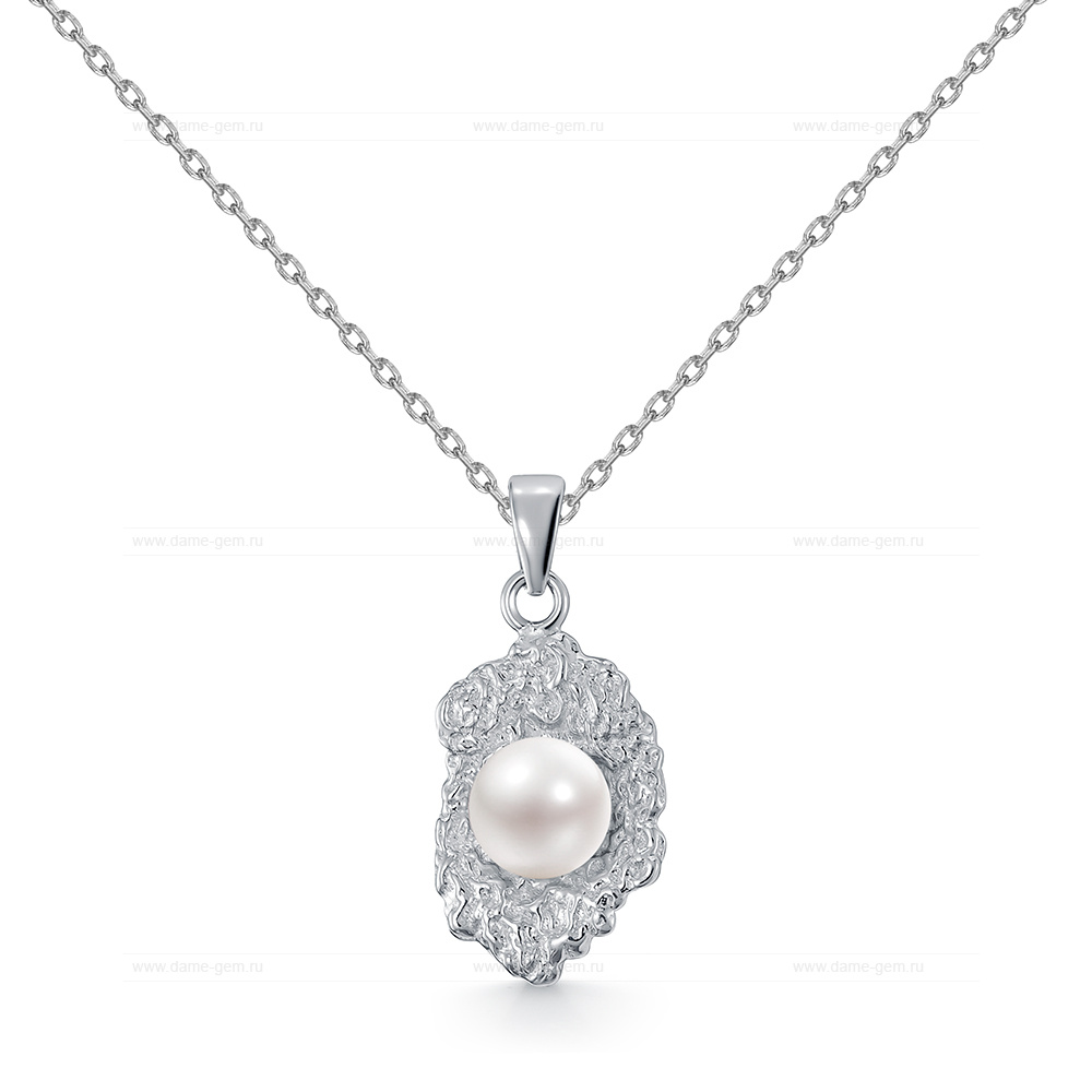 Колье из серебра 925 пробы с белой речной жемчужиной 5,5-6 мм. Артикул 12837