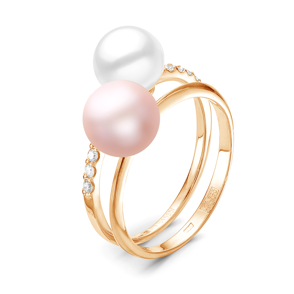 Кольцо "Дуэт" из серебра 925 пробы с жемчужинами "микс" 7-7,5 мм. Артикул 11821