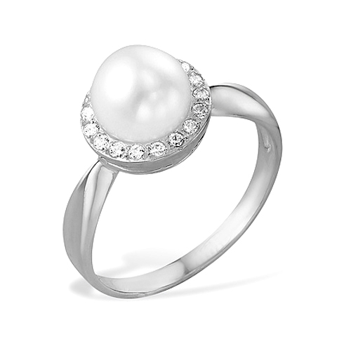 Кольцо из белого золота 585 пробы с белой жемчужиной 7-7,5 мм. Артикул 9159