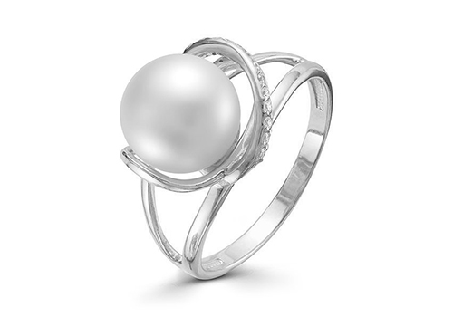 Кольцо из белого золота 585 пробы с белой жемчужиной 8,5-9 мм. Артикул 12002