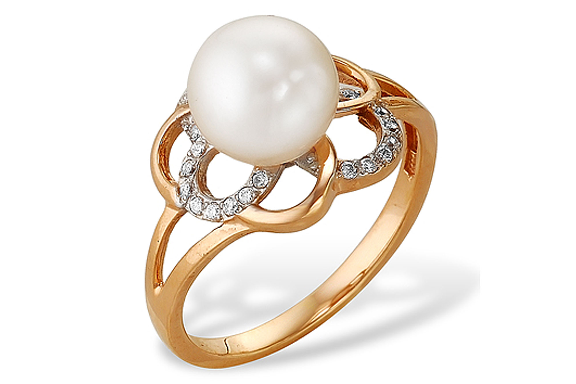 Кольцо из красного золота 585 пробы с белой жемчужиной 7-7,5 мм. Артикул 10153