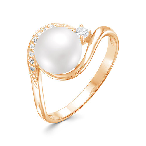 Кольцо из красного золота 585 пробы с белой жемчужиной 8,5-9 мм. Артикул 9151