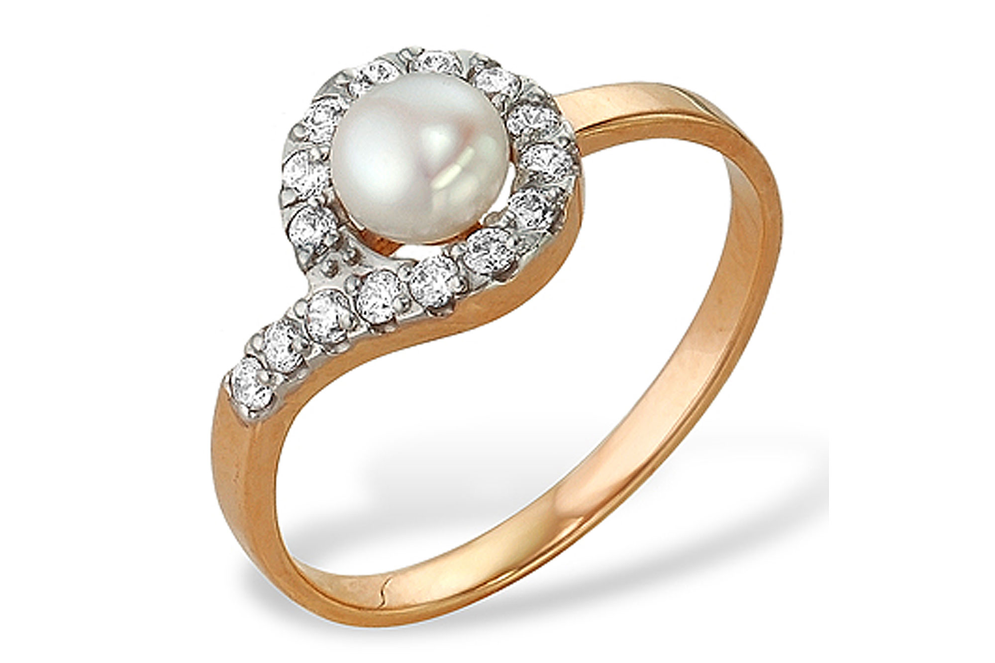 Кольцо из серебра 925 пробы с белой речной жемчужиной 5-5,5 мм. Артикул 11426