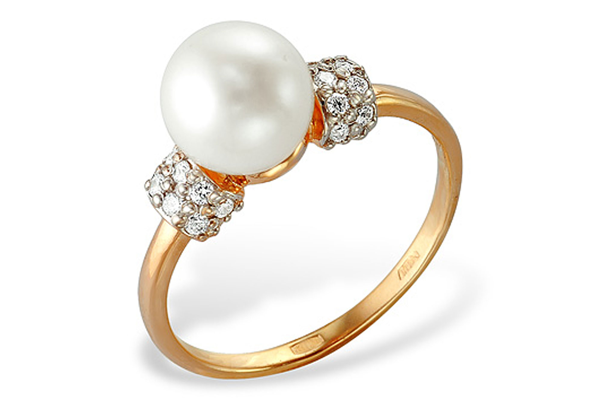 Кольцо из серебра 925 пробы с белой речной жемчужиной 7-7,5 мм. Артикул 11086