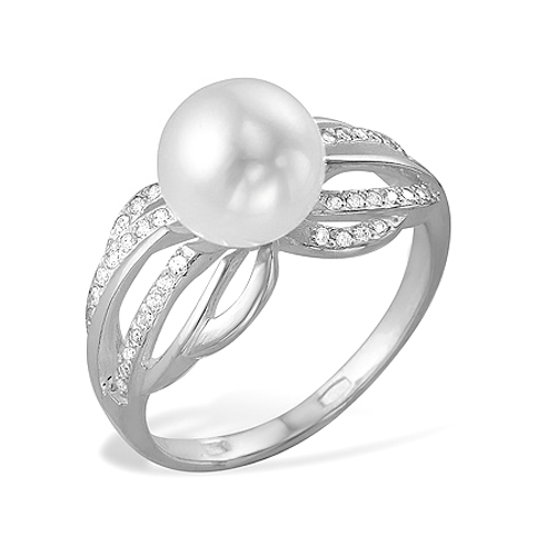 Кольцо из серебра 925 пробы с белой жемчужиной 8,5-9 мм. Артикул 9529