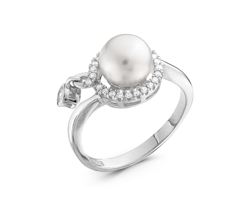 Кольцо из серебра 925 пробы с белой жемчужиной 8 мм. Артикул 11552