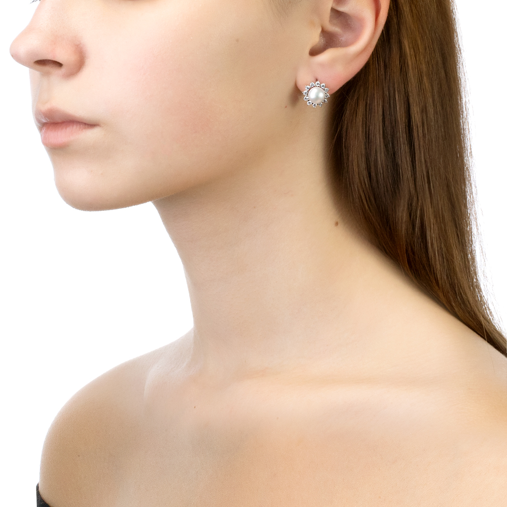 Кольцо из серебра 925 пробы с белой жемчужиной 8,5-9 мм. Артикул 11929