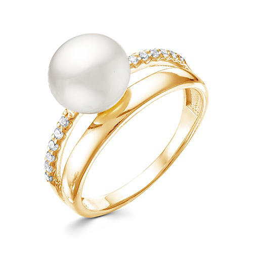 Кольцо из серебра 925 пробы с белой жемчужиной 9,5-10 мм. Артикул 12342