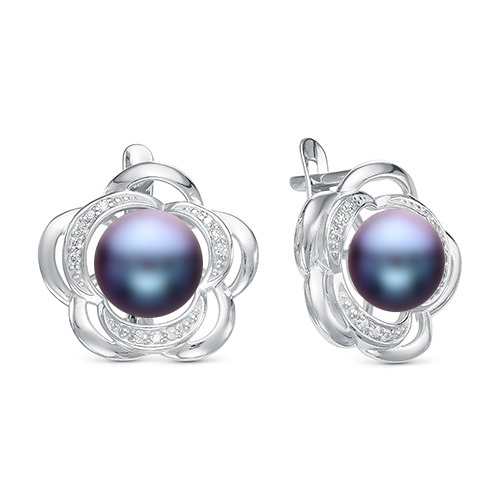 Кольцо из серебра 925 пробы с черной жемчужиной 8,5-9 мм. Артикул 11784