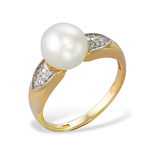Кольцо из желтого золота 585 пробы с белой жемчужиной 7,5-8 мм. Артикул 12027