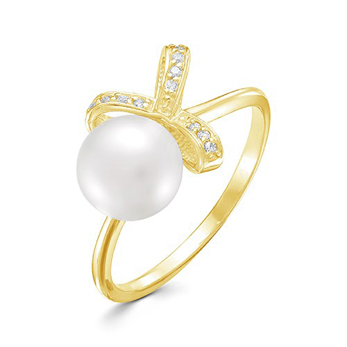 Кольцо из желтого золота 585 пробы с белой жемчужиной 8,5-9 мм. Артикул 12354