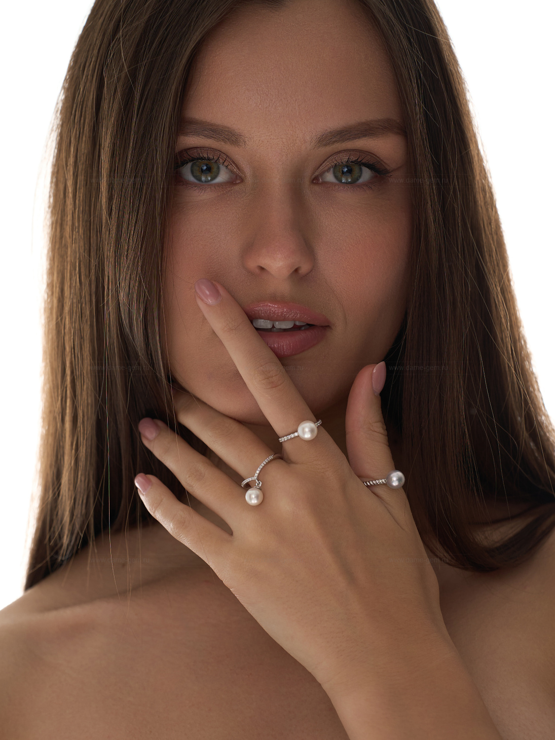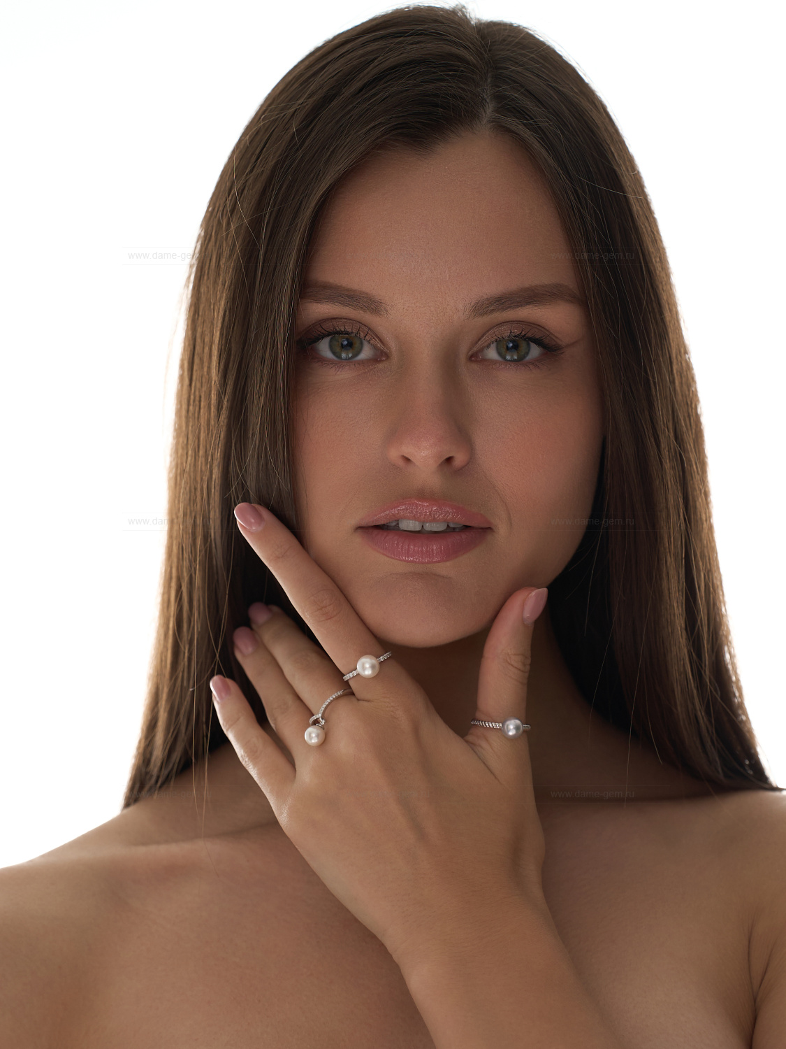 Кольцо из золота 585 пробы с морскими жемчужинами Акойя 7,5-8 мм. Артикул 11656