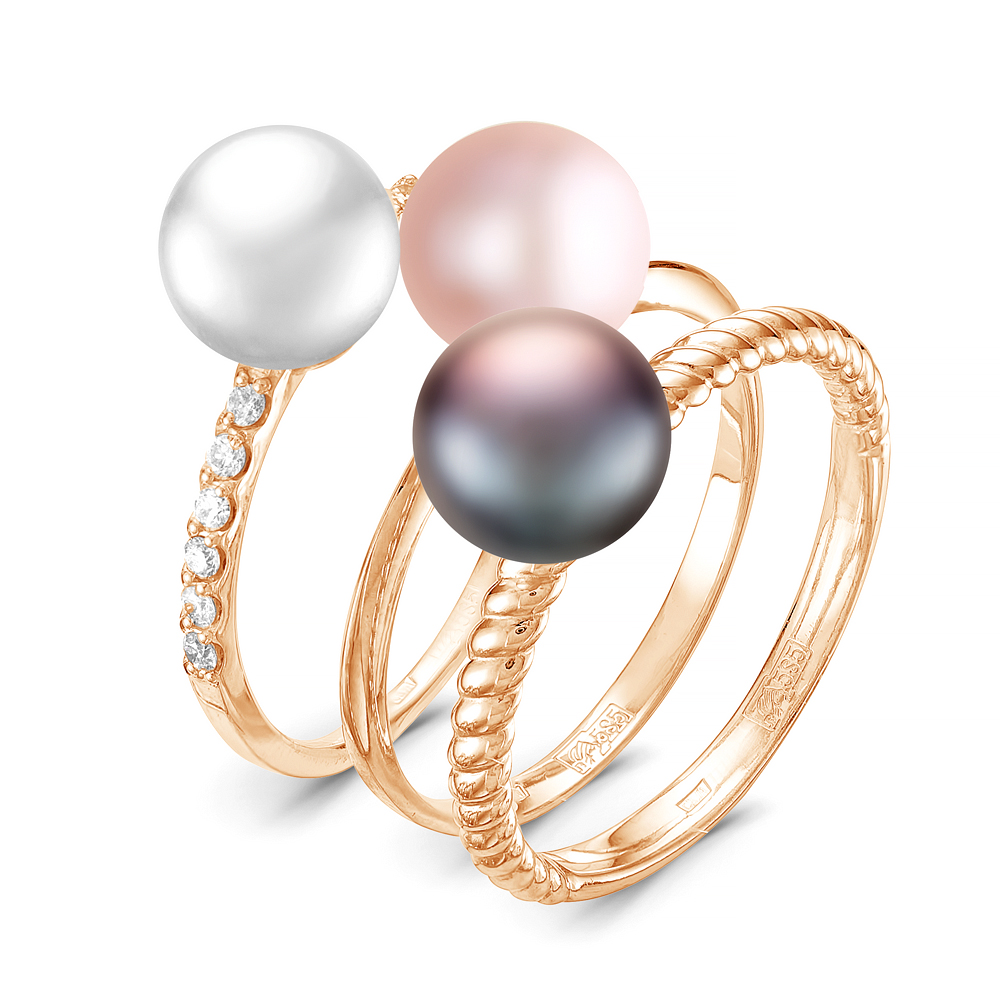 Кольцо тройное из серебра 925 пробы с жемчужинами "микс" 7-7,5 мм. Артикул 11815