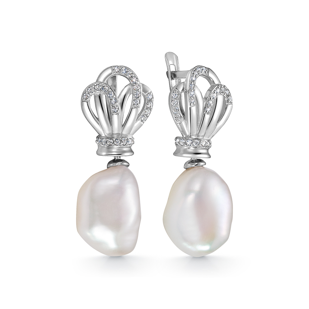 Кулон из серебра 925 пробы с белой жемчужиной "барокко" 11-14 мм. Артикул 11633