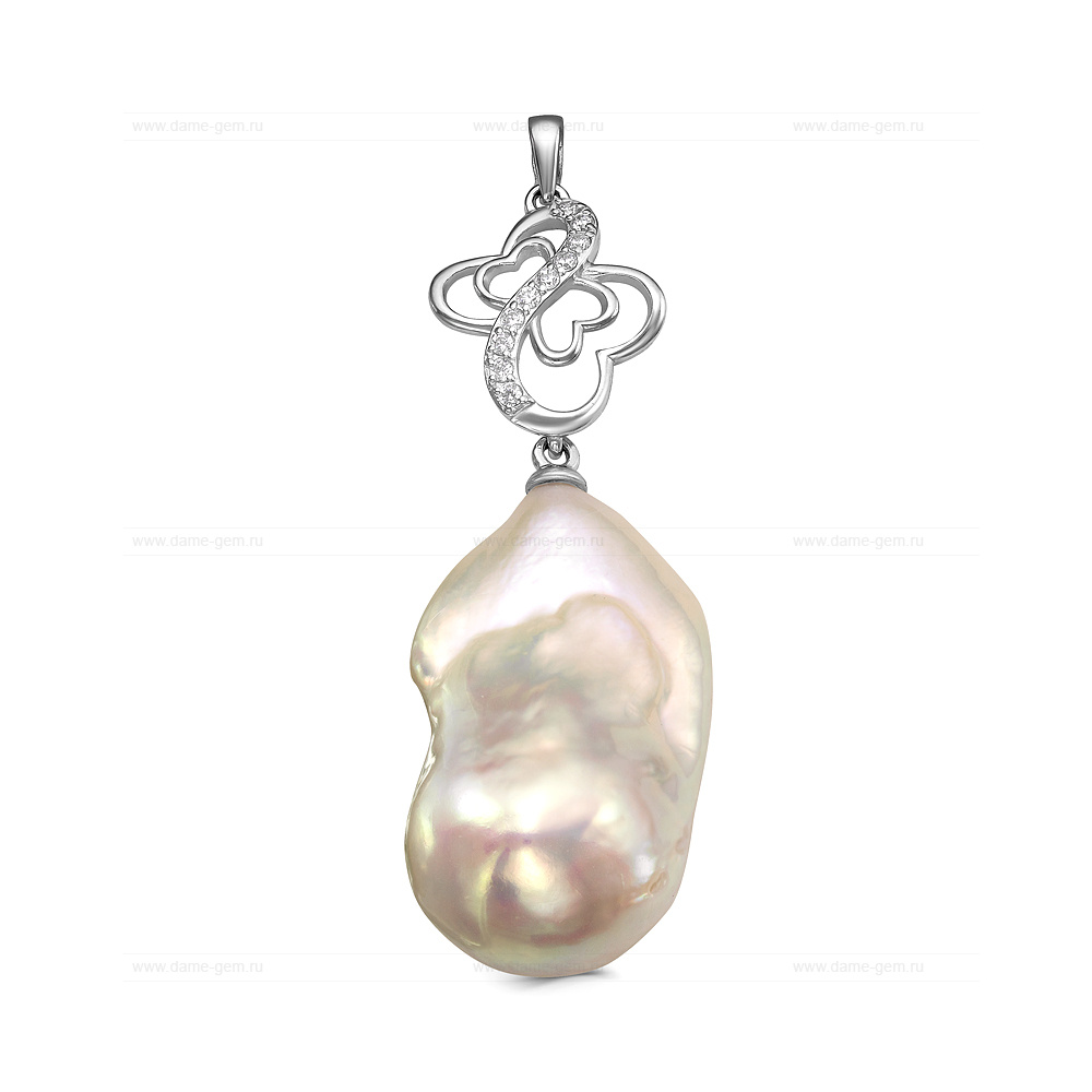 Кулон из серебра с белой жемчужиной "Барокко" 17-25 мм. Артикул 10456