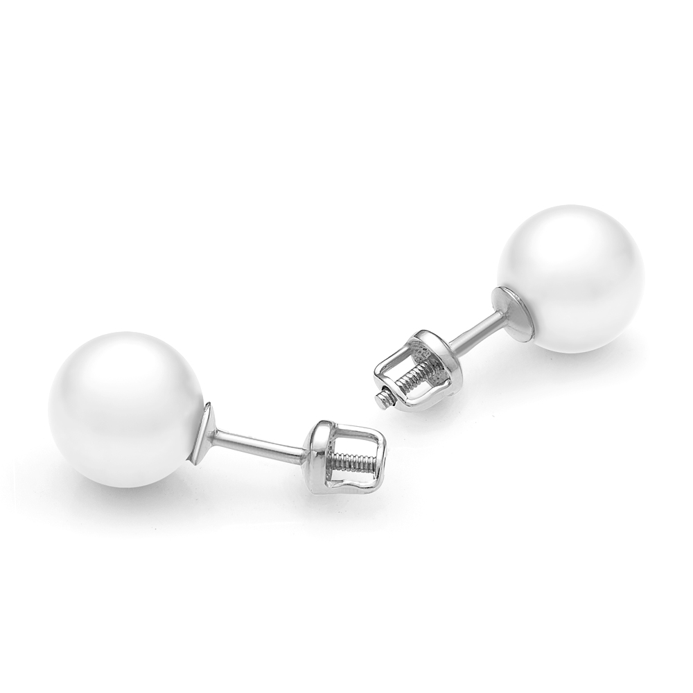 Пусеты из серебра с белыми жемчужинами 7,5-8 мм. Артикул 11737