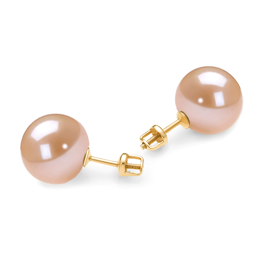 Пусеты из серебра с розовыми жемчужинами 9-9,5 мм. Артикул 11751