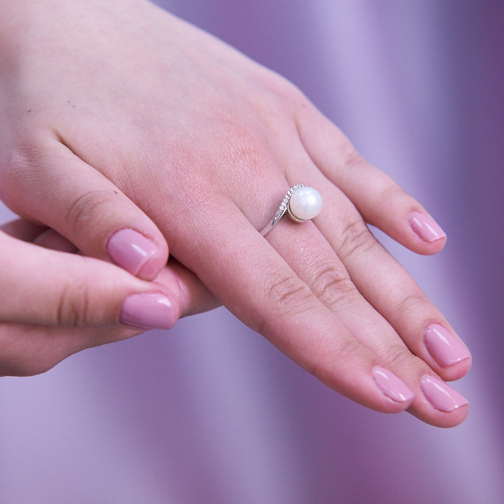Серьги из белого золота с белыми жемчужинами 7,5-8 мм. Артикул 9295
