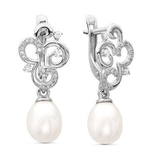 Серьги из серебра с белыми жемчужинами 7,5-8 мм. Артикул 9226