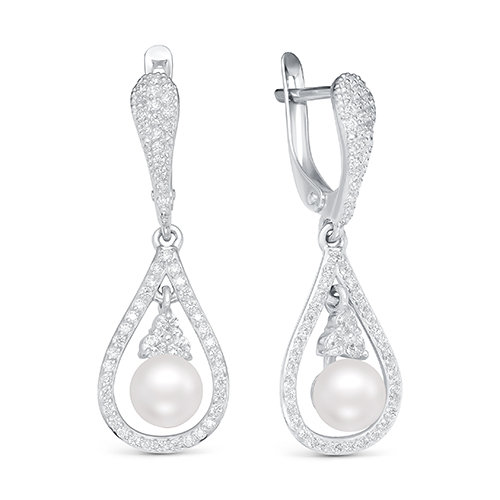Серьги из серебра с белыми жемчужинами 7 мм. Артикул 10203