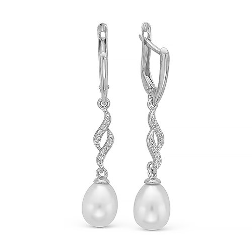 Серьги из серебра с белыми жемчужинами 7 мм. Артикул 12114