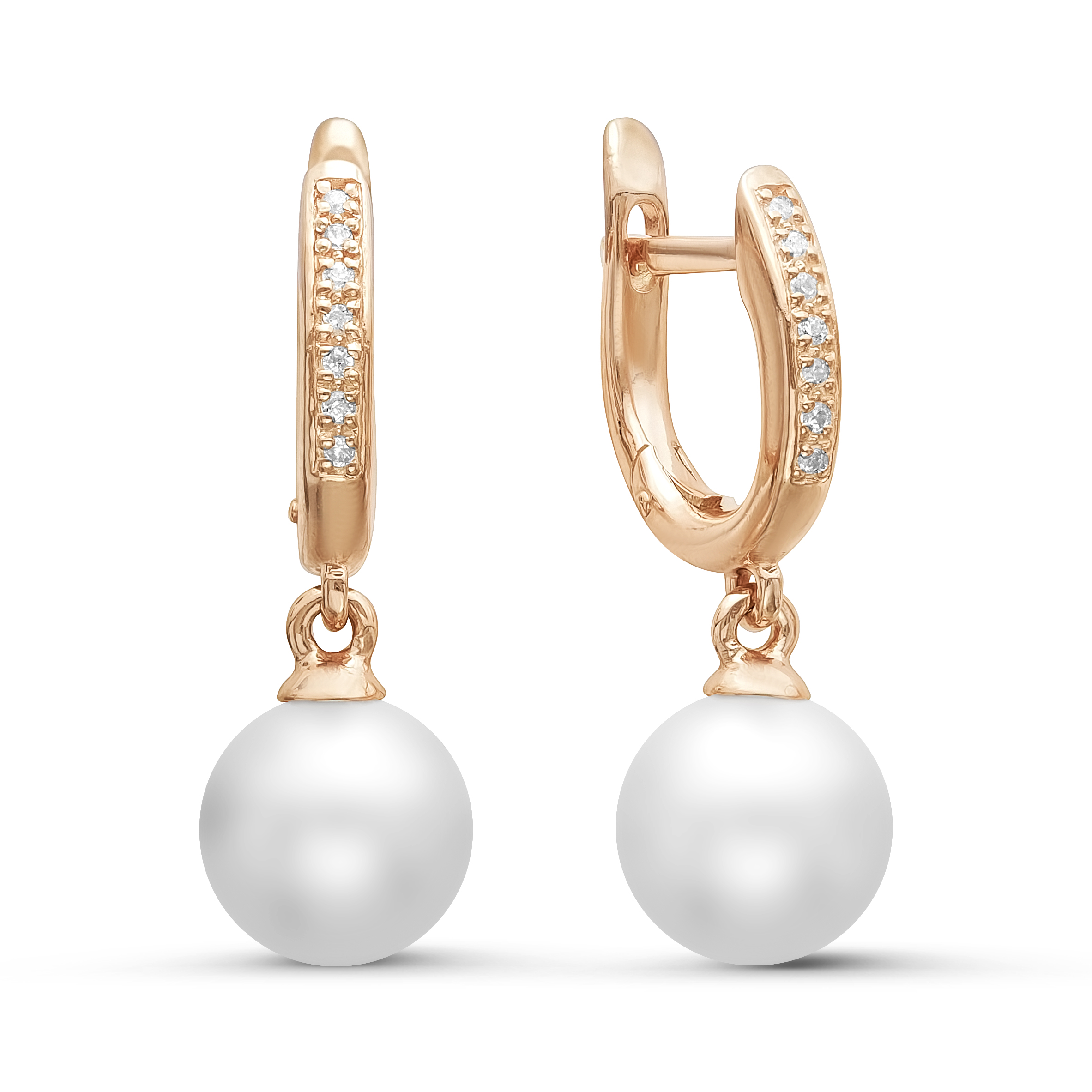Серьги из серебра с белыми жемчужинами 8,5-9 мм. Артикул 11478