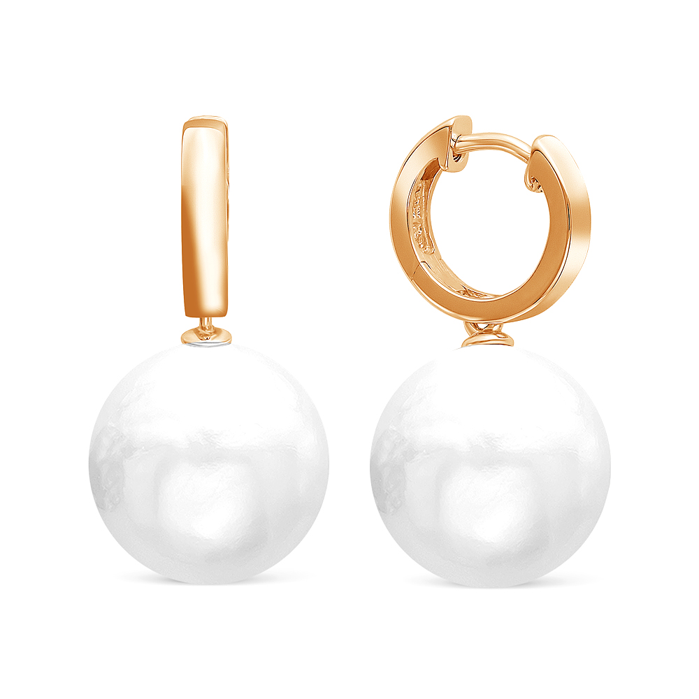 Серьги изготовлены из серебра 925 пробы с золотым покрытием "красное золото" и украшены крупными жемчужинами белого цвета.