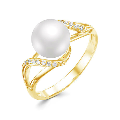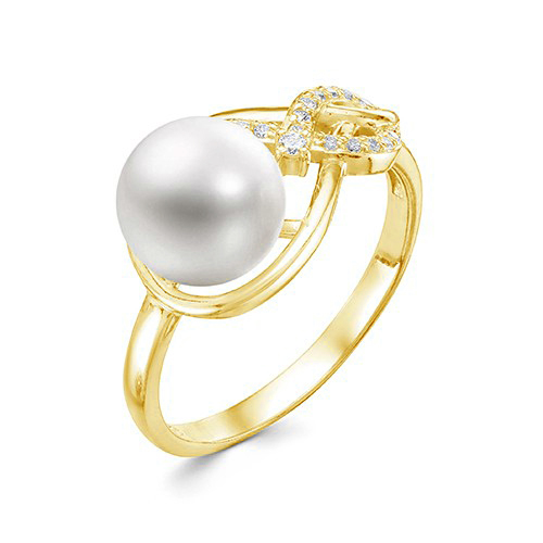 Серьги из желтого золота с белыми жемчужинами 7,5-8 мм. Артикул 12168
