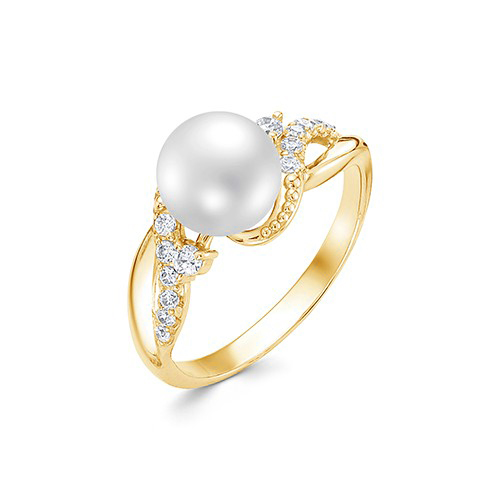 Серьги из желтого золота с белыми жемчужинами 8,5-9 мм. Артикул 9699